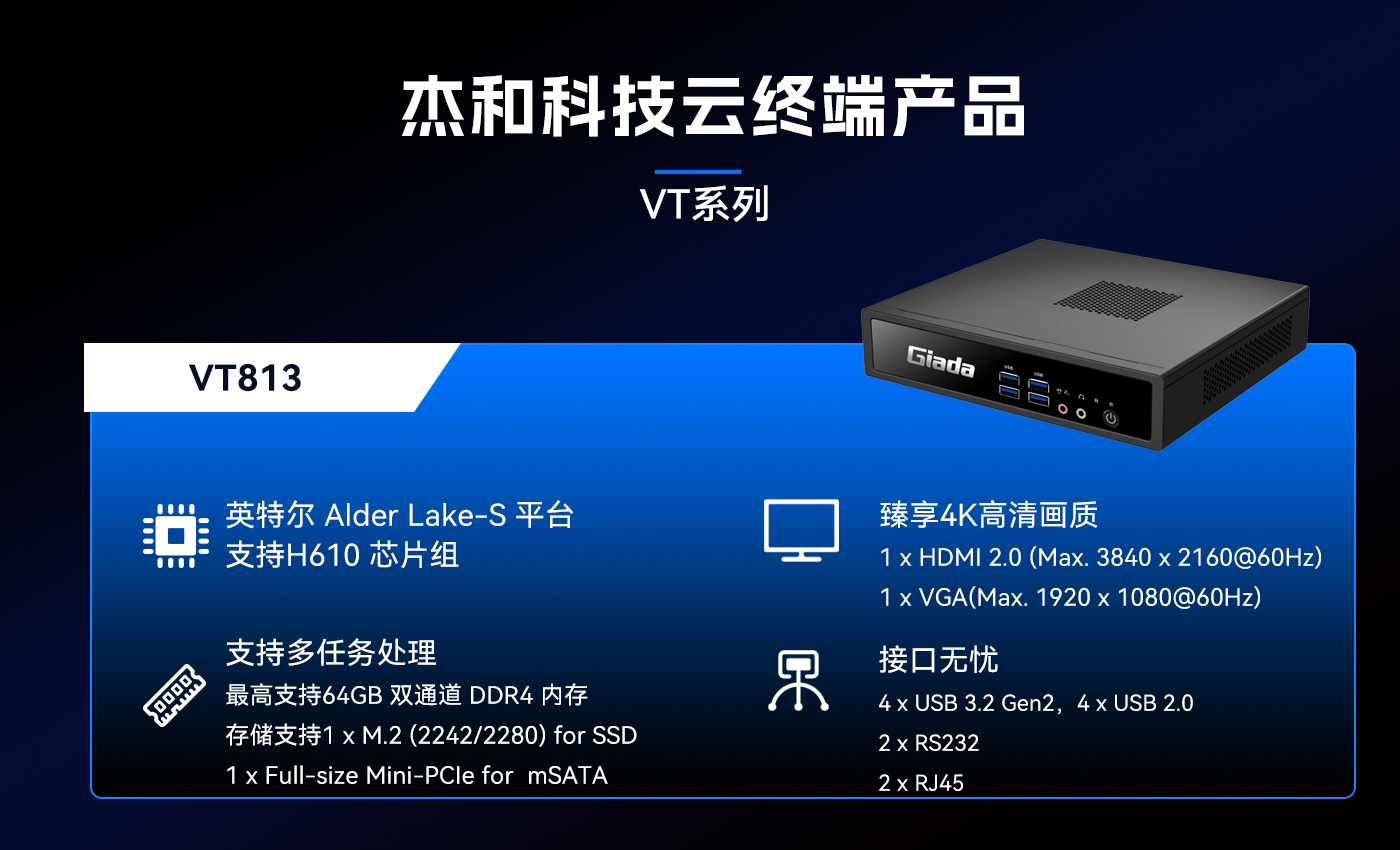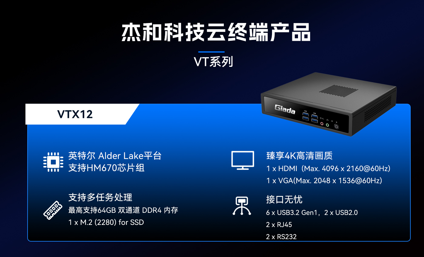 除此之外星空科技云终端VT系列产品线还提供多样化的硬件配置选择,涵盖多种处理器架构、内存容量、存储设备和接口类型,满足不同应用场景的个性化需求。