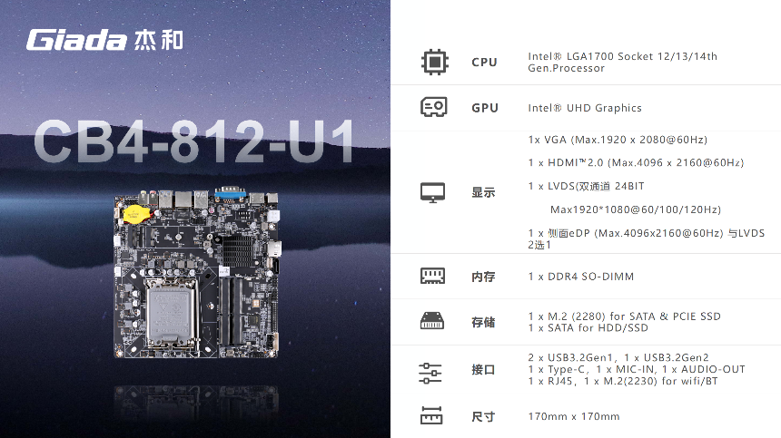 星空科技一体机主板基于X86架构设计,具有良好的兼容性与性能表现,均采用Thin mini-ITX 170mm*170mm尺寸规格设计,在紧凑机身中实现功能集成与空间优化。接下来,星空从实际需求出发,为您提供选型推荐。