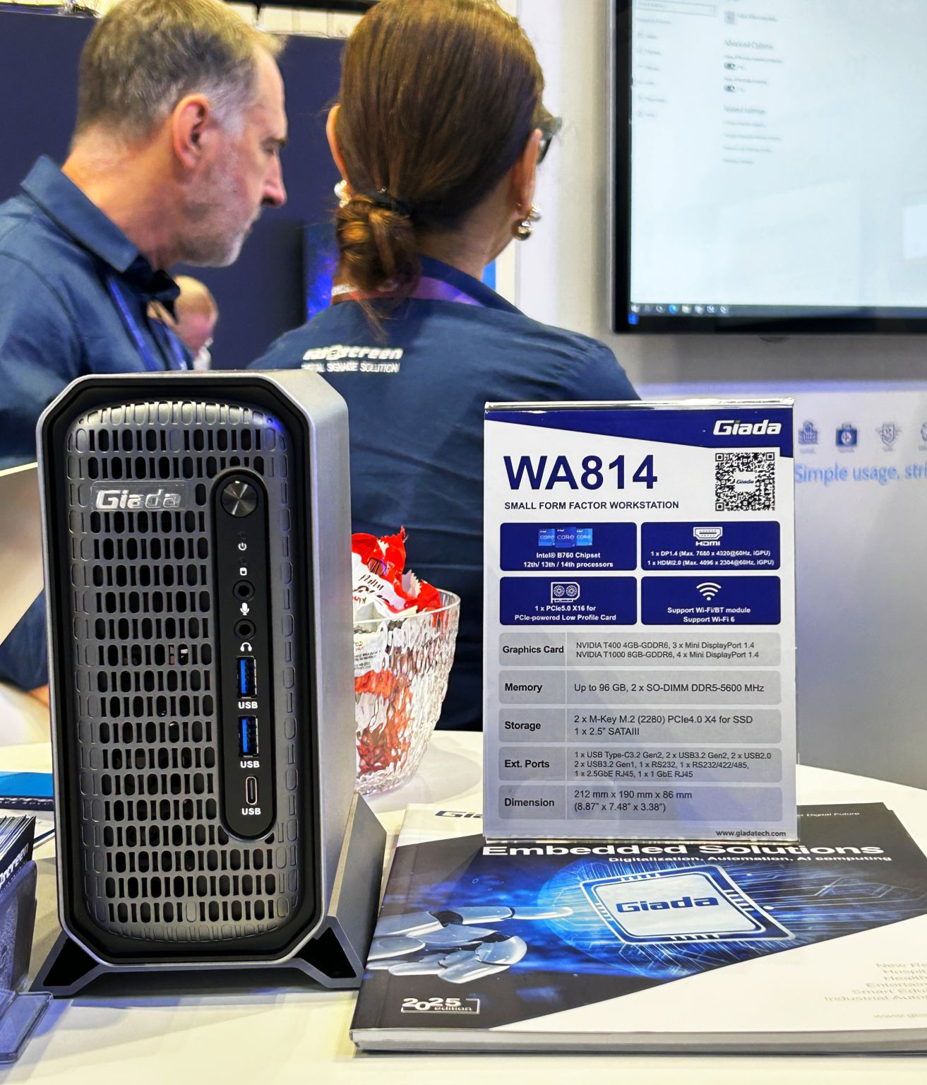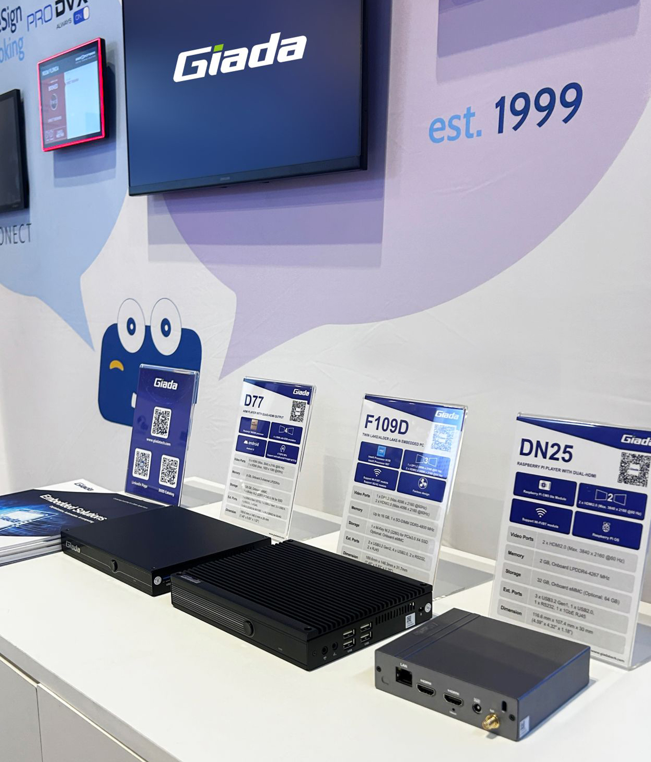 Giada星空科技作为全球数字标牌领域的领导品牌,其产品广泛应用于全球大型连锁店、购物中心、各大中小学、医疗机构、企业办公室等多种场景:包括门牌显示、产品展示视频墙、电梯广告屏、排队叫号系统等,其中一系列支持X86/ARM平台的嵌入式电脑、数字标牌播放器产品在现场备受关注!