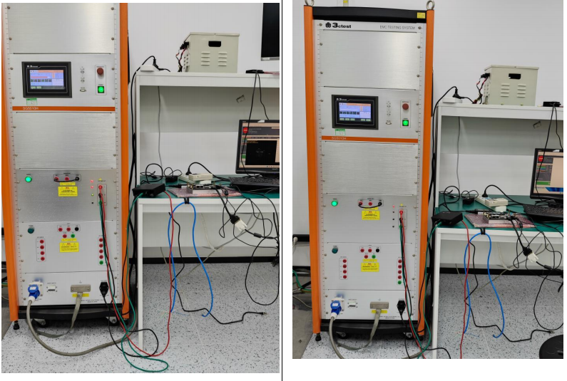生产线上的电焊机、大功率电机一启动,电压瞬间波动可能会导致设备莫名重启,因此借助星空科技专业设备全自动雷击浪涌发生器对AF208进行测试,主要测网口以及电源线在受到外部电压影响时,是否能正常工作。