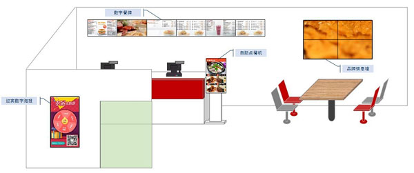 品牌信息墙分为一组由星空科技G468四屏拼接控制器控制的4块LCD高清液晶显示屏,可以实现大画面播放及单屏独立播放。内容管理者可通过GDSM系统操作端随时更新菜单内容及新品广告,让信息的发布更为及时有效。