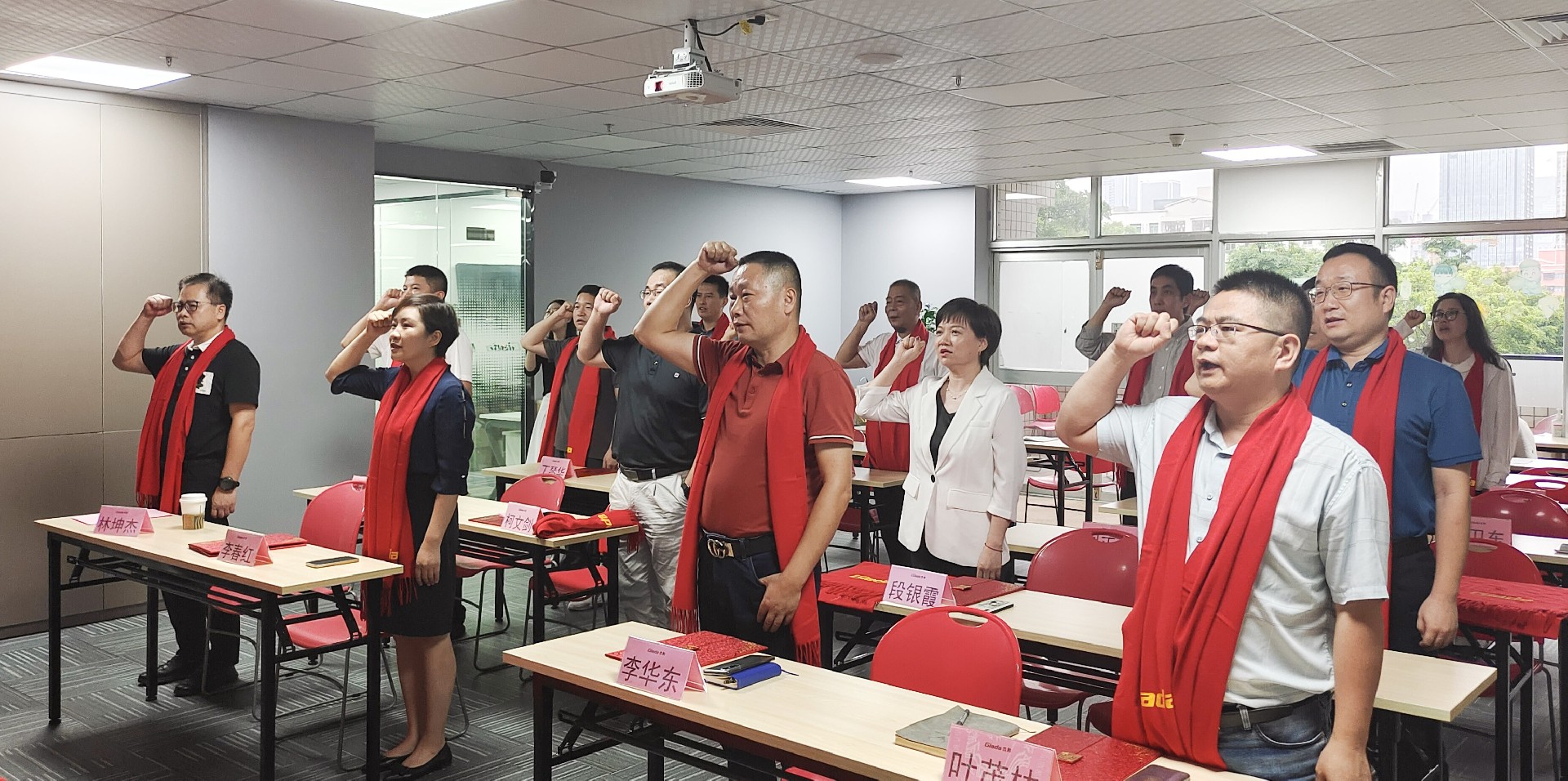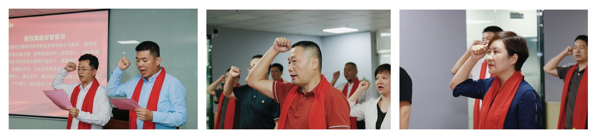 在签约仪式的最后时刻,董事长林坤杰先生与全体股东合伙人共同宣读誓词:我自愿成为深圳市星空科技发展有限公司股东,做星空科技公司光荣的奋斗者,我将发扬星空人艰苦奋斗、开拓创新的精神,为公司实现做大做强不遗余力;我将践行“共创、共担、共享”的股权文化,与企业发展荣辱与共;在工作中主动担当、迎难而上,廉洁正气、遵守原则,时刻维护公司的利益,以身作则、严于律己,做全体员工的楷模!星空齐心协力,斗志昂扬,信心满满!