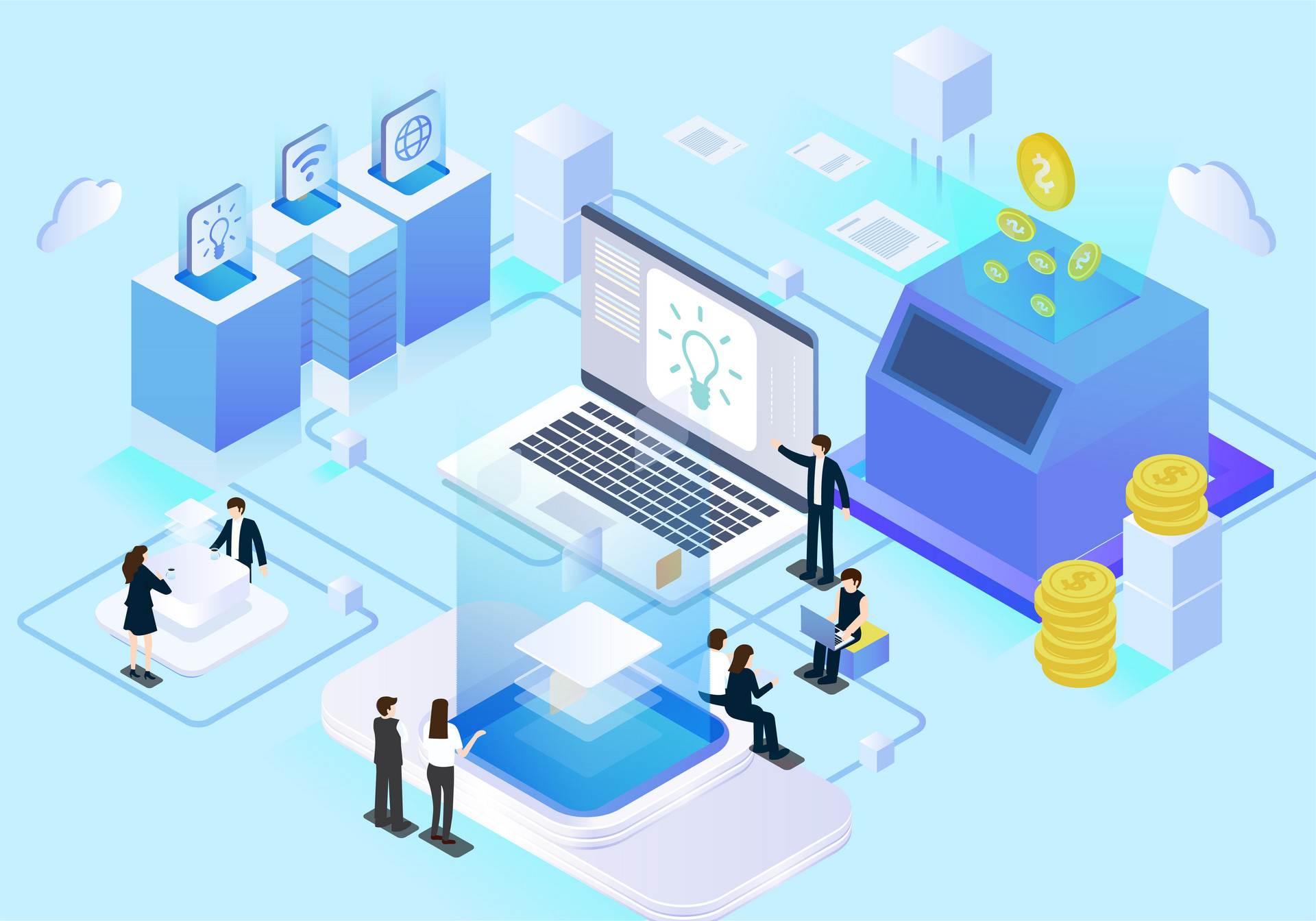 智能办公是一种以科技为基础,对办公业务所需的软硬件设备进行智能化管理,以提高办公效率、促进协作为目的的新型办公方式。其建设目标是实现办公设备与设备、设备与平台、设备和人、人和人全连接,以创造安全、舒适、节能、高效、便捷的办公条件,为企业提供新的运营模式和增值服务。