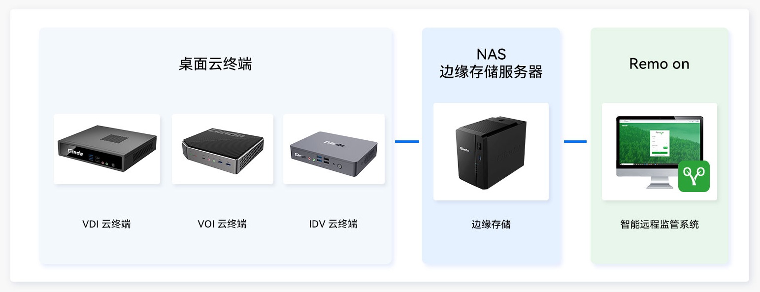 对于目前企业办公场景而言,云终端部署是未来趋势。云终端作为办公的新一代电脑主机,与云桌面强强联合,致力于解决运维成本高、数据保密性差、办公设备携带不便,数据同步困难,设备功耗大等传统办公条件的弊端。为企业用户构建了灵活、智能、安全的数字化办公空间,满足客户对企业办公、设计研发、生产等终端设备进行集中管理,数据集中存储,资源灵活分配,全局统一部署和管理的需求,实现便捷移动办公、改善员工办公体验,让办公更高效、更便捷。