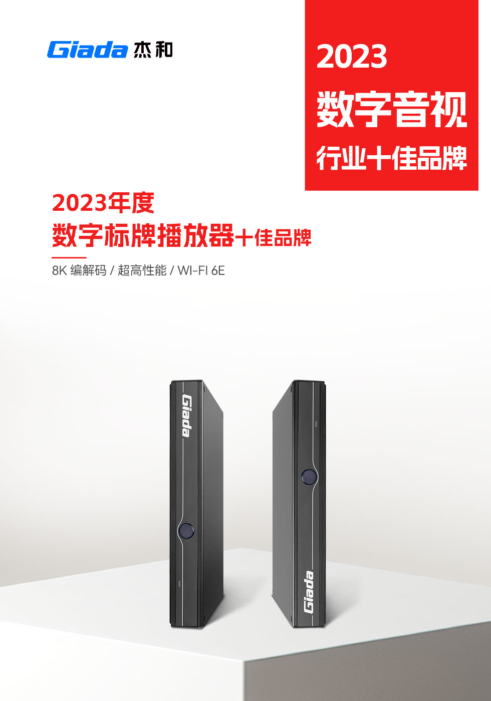 2023年接近尾声,新旧更替之际,第15届DAV数字音视工程网“数字音视行业十佳品牌评选活动”获奖名单新鲜出炉。星空科技在此次评选活动中,荣获“2023年度商显主板十佳品牌”、“2023年度数字标牌播放器十佳品牌”两项大奖,Giada星空科技已连续四年登上同一榜单。