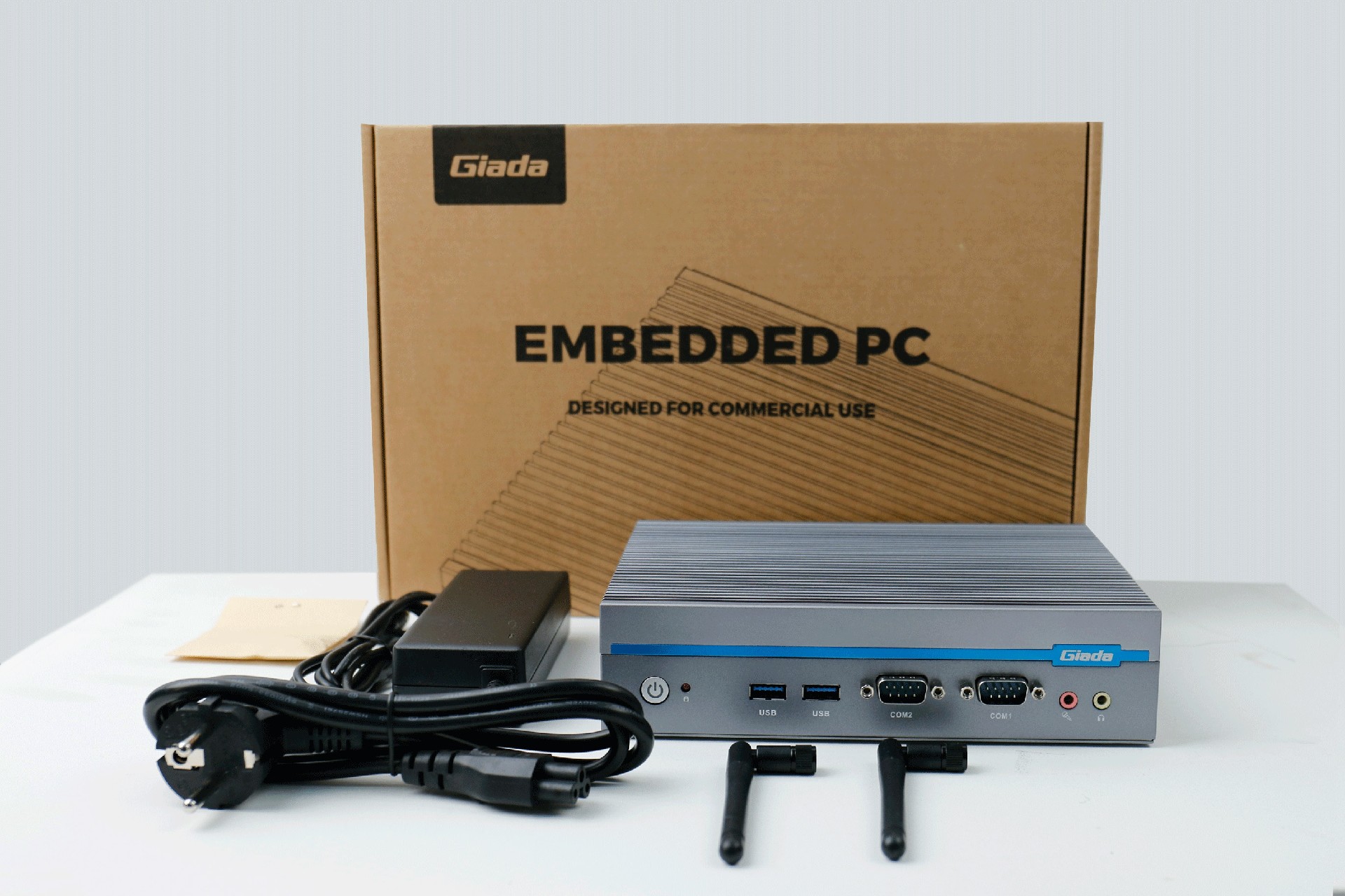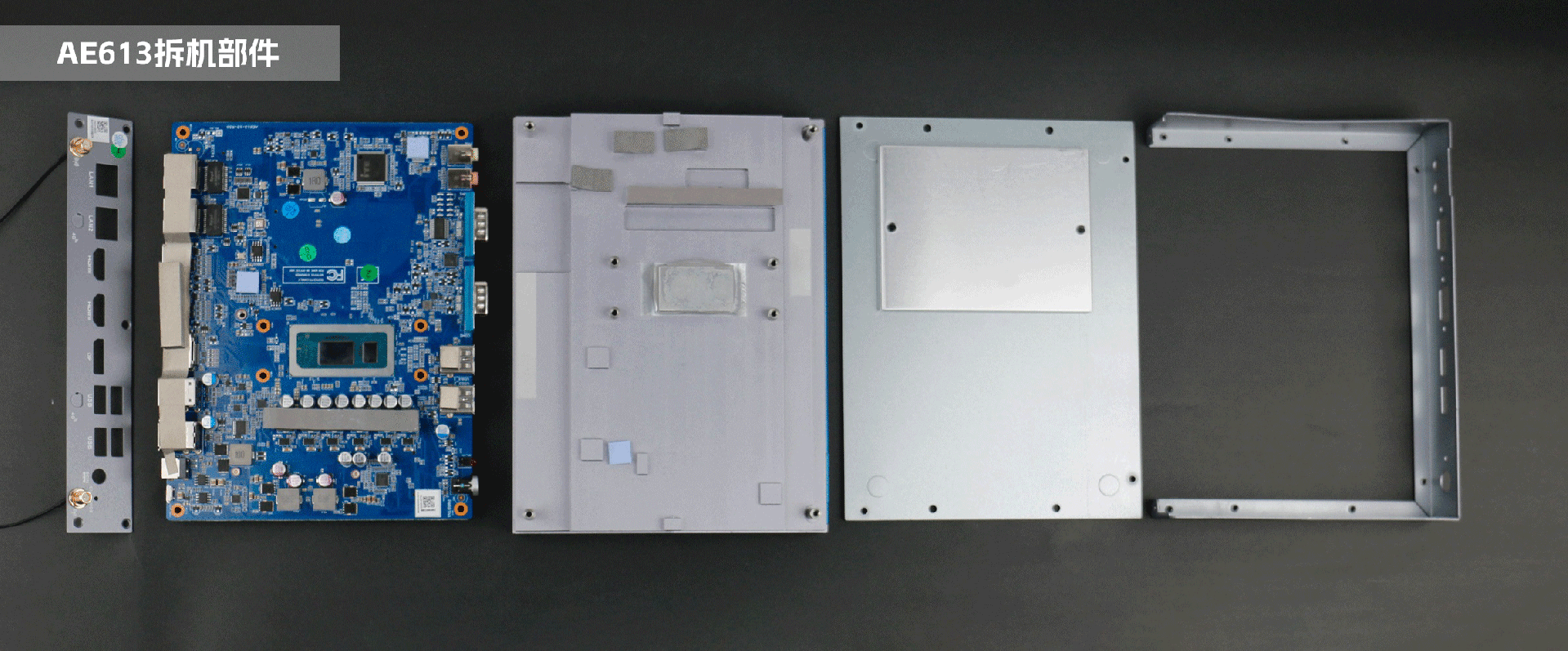 嵌入式整机AE613外包装采用环保材料设计,内部配备适配器、AC线、天线棒、螺丝包,满足通用需求,整机外观机壳顶面采用一体式铝板增高的鳍片散热设计,整机结构采用全铝设计保证散热与抗压性,通过星空特有无风扇静音散热设计使整体散热效果非常优秀,同时营造出极致安静的工作和使用环境,无噪音,更防尘。