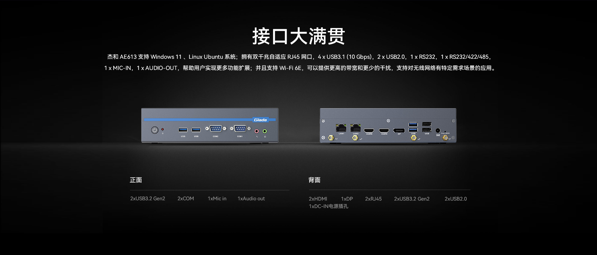 1 x E-Key M.2 (2230) for WiFi/BT(支持Wifi5/6/6E)