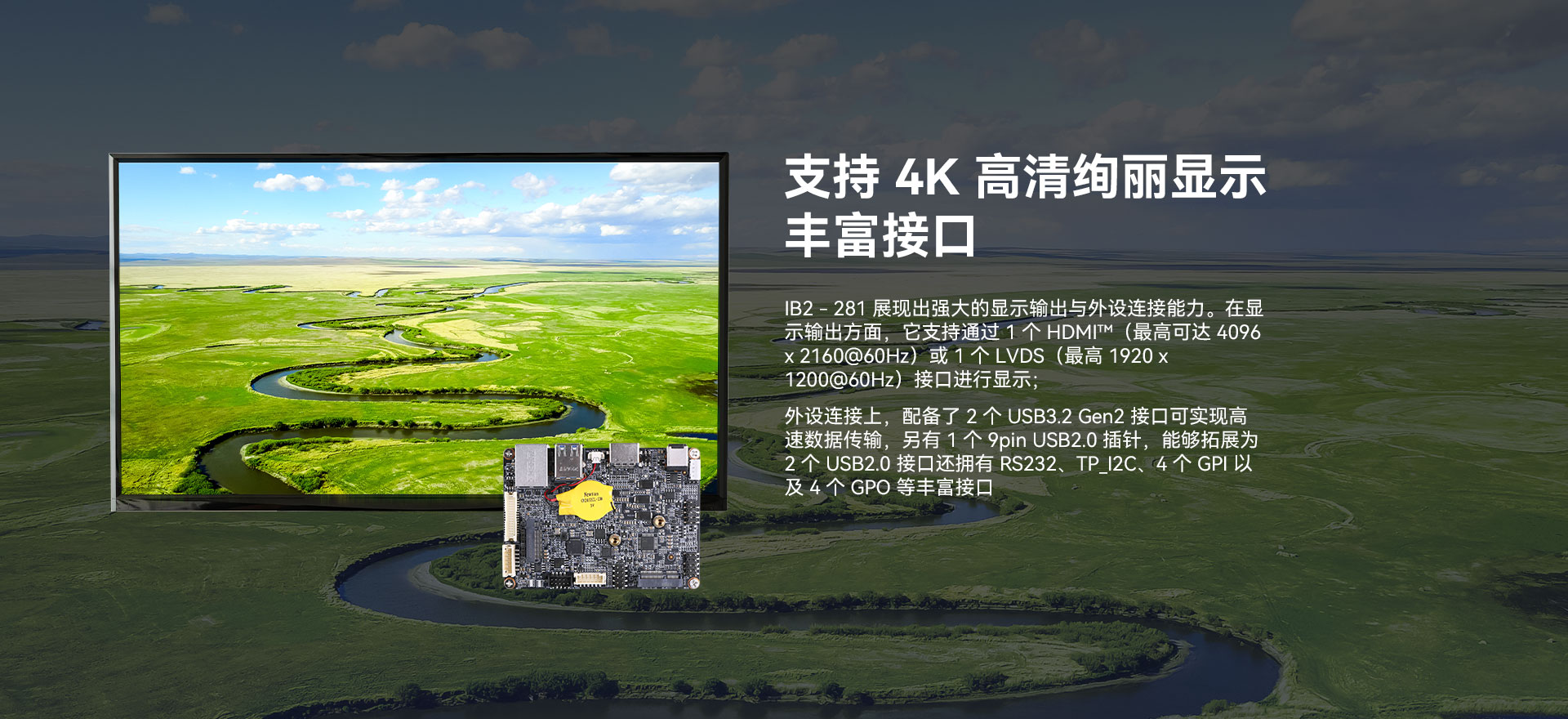 提供1x LVDS +1x HDMI™双视频接口输出