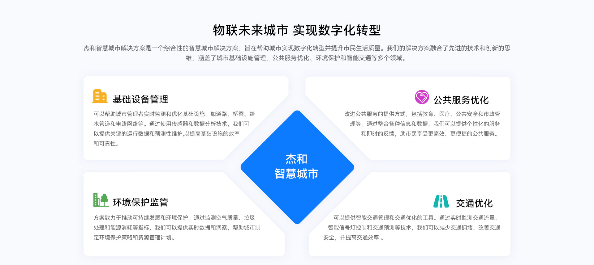 致力于推动城市的可持续发展和环境保护。通过监测和管理能源消耗、减少交通拥堵、优化垃圾处理和改善空气质量等措施